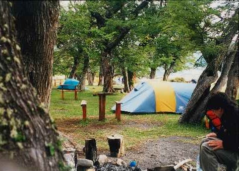 For those of us who are vertically challenged, there is only one way to climb over trees a meter or more in diameter – roll over it somehow and hope not to either land knee deep in mud or slide off the edge of the trail onto the glaciar sparkling below. I lost track of the time it took to get to Los Guardas. A nice enough place but I was so cold and wet that the thought of warmth inside a refugio was tempting. Another two hours on the trail and I limped into the campsite at Refugio Grey. It was 6 pm and I had only taken a 20 minute break today.