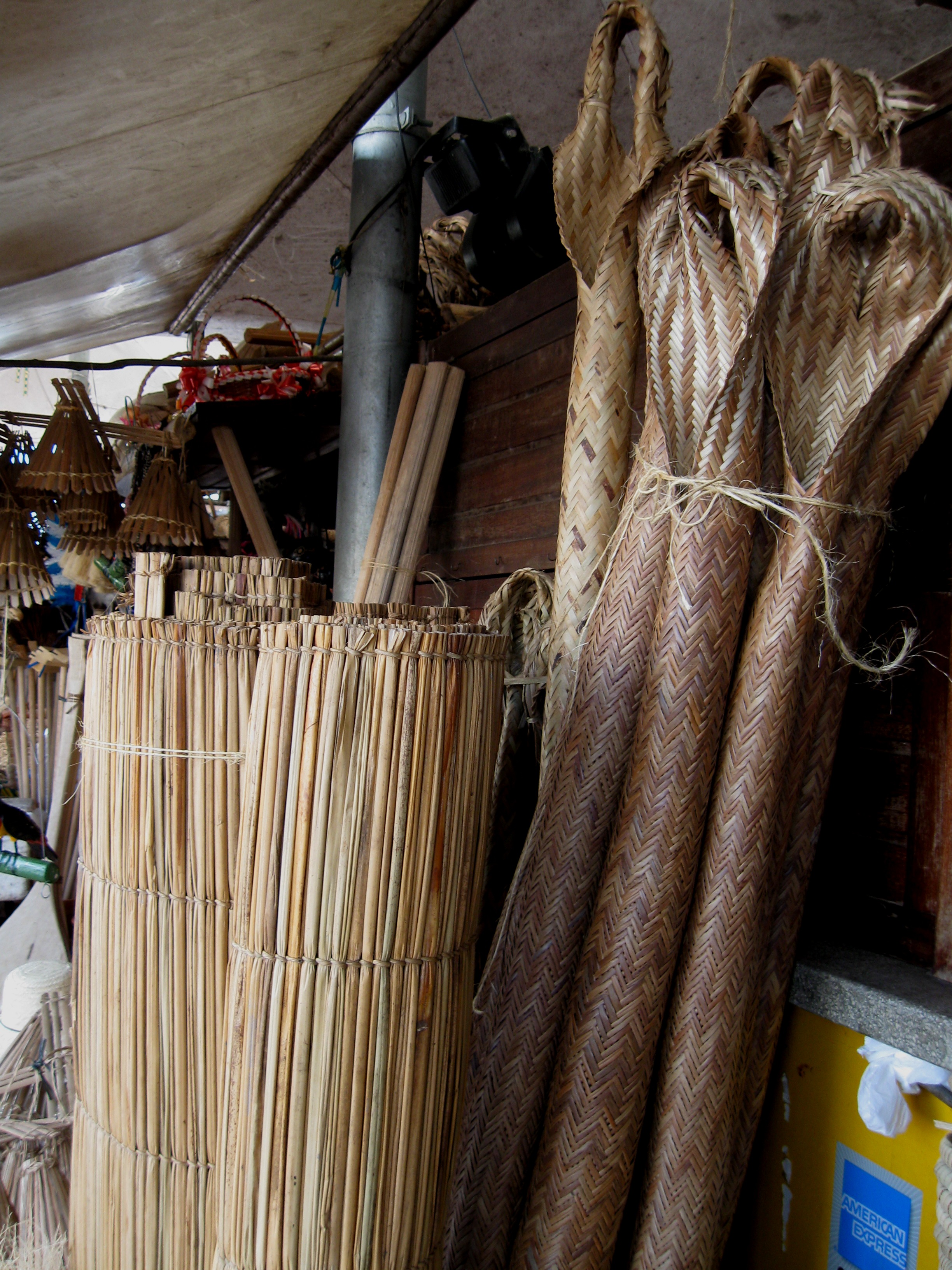 There are areas for non-food items as well. There are handmade mats, fans, utensils and baskets made of palm and bamboo and wood. All are handmade but these are not the sort sold at exclusive boutiques but just normal everyday items that people buy at the local market. There are piles of clothes, next to piles of shoes, next to soap, safety pins and pots and pans.