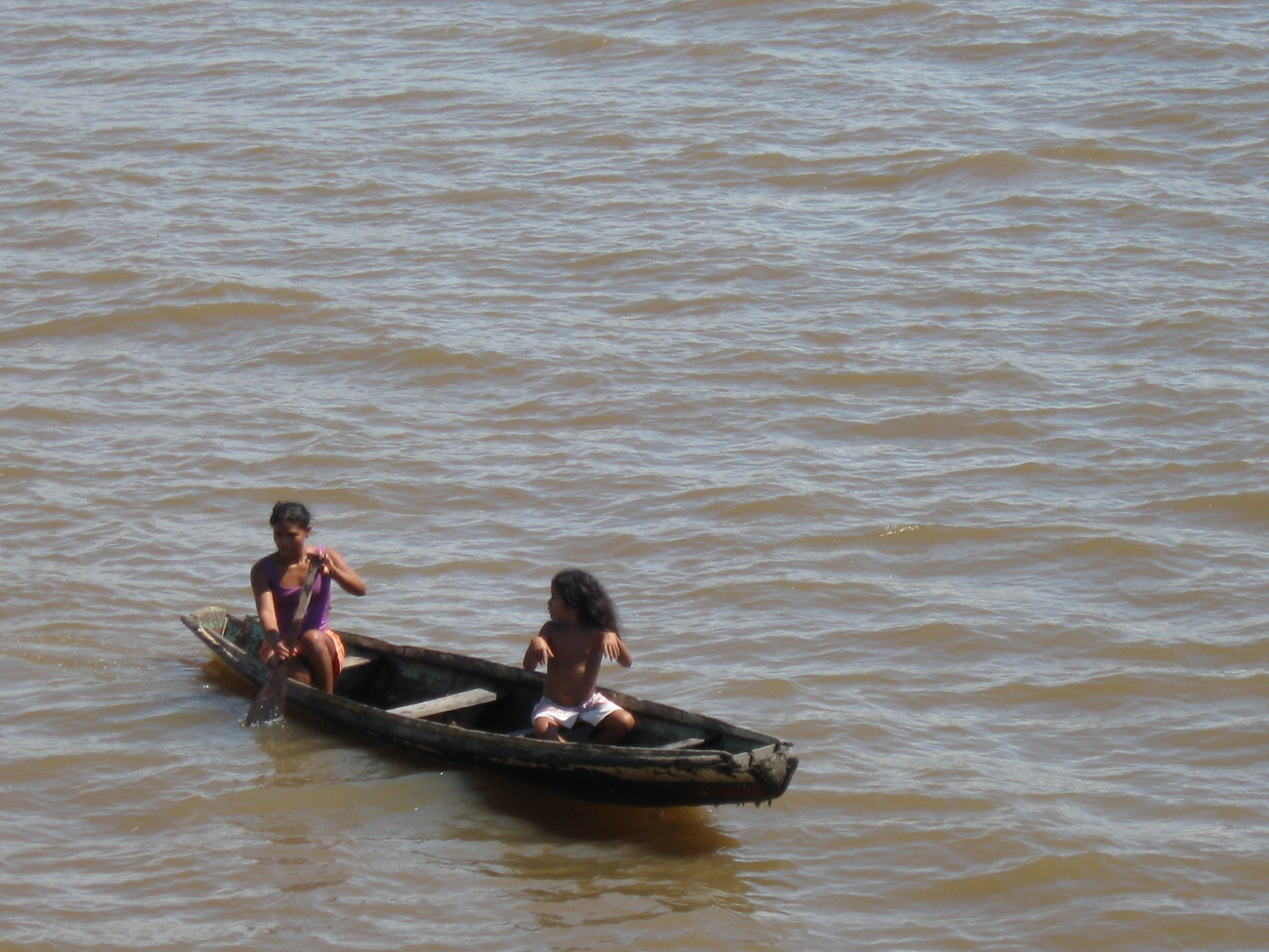 The sun is blisteringly hot and I have found a spot with some shade to sit and watch the river go by. There are small villages strung along the shore. As the boat approaches, people, children mostly get into their dugouts and paddle frantically toward the boat. A trio of young boys are in a motorboat and easily overtake the others. They throw a rope with metal hook at the end and manage to anchor it to the boat. Then begins the fascinating sight of them pulling close and clambering up into the boat. Their agility would put many monkeys to shame!