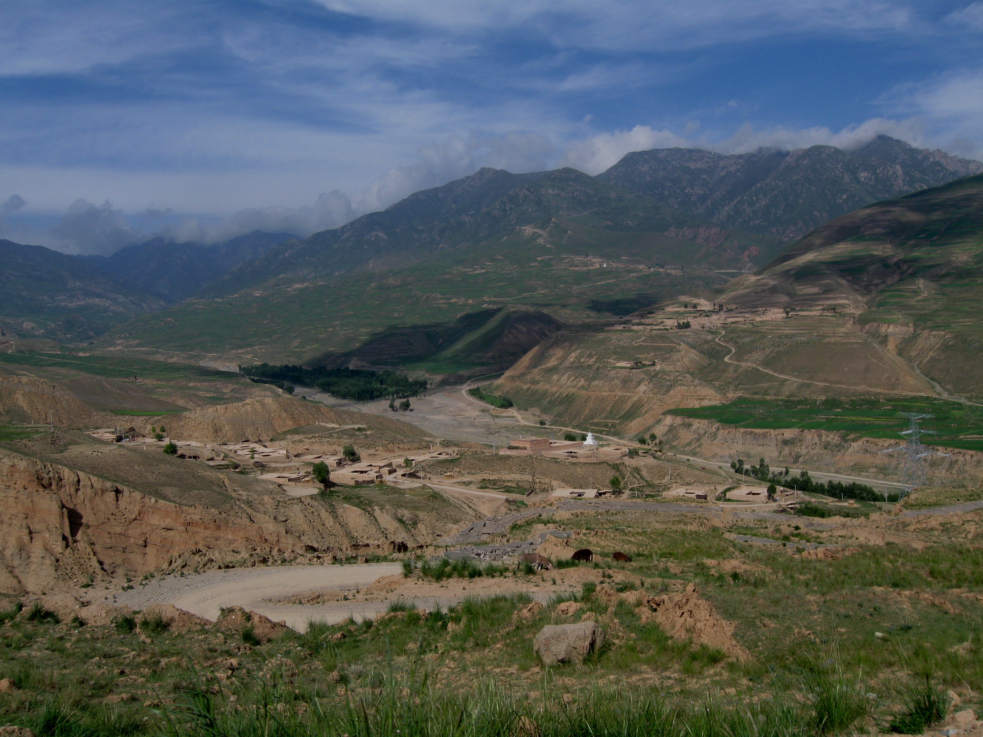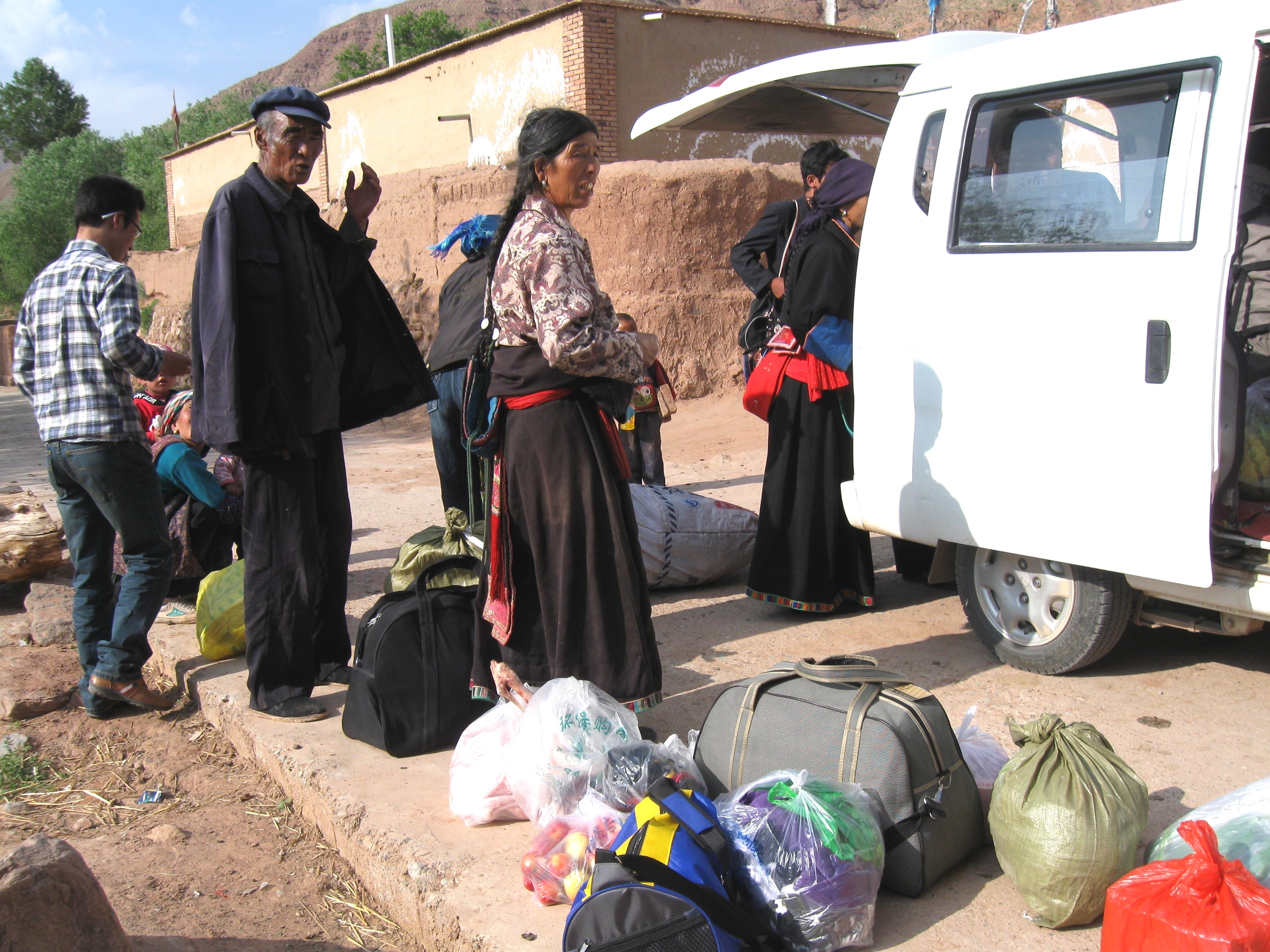 From Xining we took a shared minivan to a smaller town and from there to an even smaller town squished in with the locals in a minivan among bags of shopping. The village closest to the monastery lay across a few high passes and we found ourselves travelling in the open flatbed of a truck. Once over the last pass, we could see a lush valley protected by a ring of high mountains.