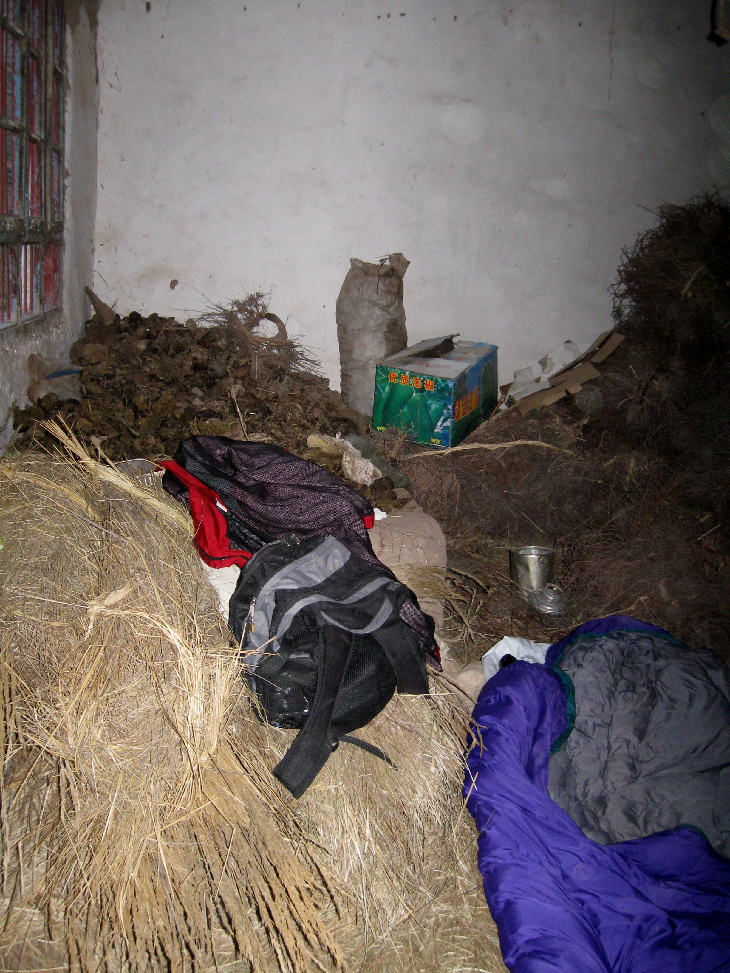 It was then that we discovered that the house was just a storage shed, the lock held together with a bit of wire. I quickly added breaking and entering to my list of accomplishments and found the shed full of hay, straw and dried piles of yak-dung that are used as fuel in these parts. We piled some of the straw on the floor to make lumpy beds and put the sleeping bags on top. We were sheltered from the biting wind – really, what more could one possibly want? We even had company that night – a mouse or possibly rat that was upset to have his home invaded.