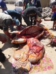 The animal had been slaughtered by the time I got back, the blood drained in the halal way I was told. I had heard no bellow or cry. Butchering was in progress as five or six men wielding sharp knives carefully cut away the skin and proceeded to cut out each organ. As each organ and the meat was cut out, it was carted away into the house, to be cut into smaller pieces and distributed. The whole process took some two or three hours and was skillfully done. There is no wastage here – every part of the animal will be used, from its skin to its intestines.