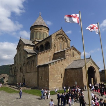 The Svetitskhoveli Cathedral and the the 6th century Jvari church are among the oldest and most venerated of Georgia’s plethora of churches. They are duly mobbed by tourists on a daily basis as well as by devotees on a more regular basis. I got myself on a public minibus added myself to the stream of visitors.