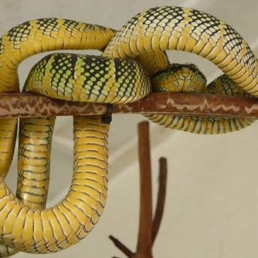 Entering the temple, it looks like any other temple, but once my eyes adjust to the dimness, I see a pair of what looks like flower stands at the altar. And draped on those stands are three or four pit vipers! With a coloring of yellow, green and black they look simultaneously beautiful and loathesome. Fascinated and repelled in equal parts, I stare. And there on the other side, are some more. Next to the temple is an annex and here there even more – on beams, on picture frames, atop railings. There are no glass partitions – they apparently crawl and park themselves wherever they wish. They doze within touching distance, certainly within biting distance. A particular one, carefully marked with red paint has been de-venomed and is the unwilling participant in photo shoots. The three large boa constrictors that share a big glass case seem equally resigned to the few tourists that opt to have photos with snakes draped on them.
